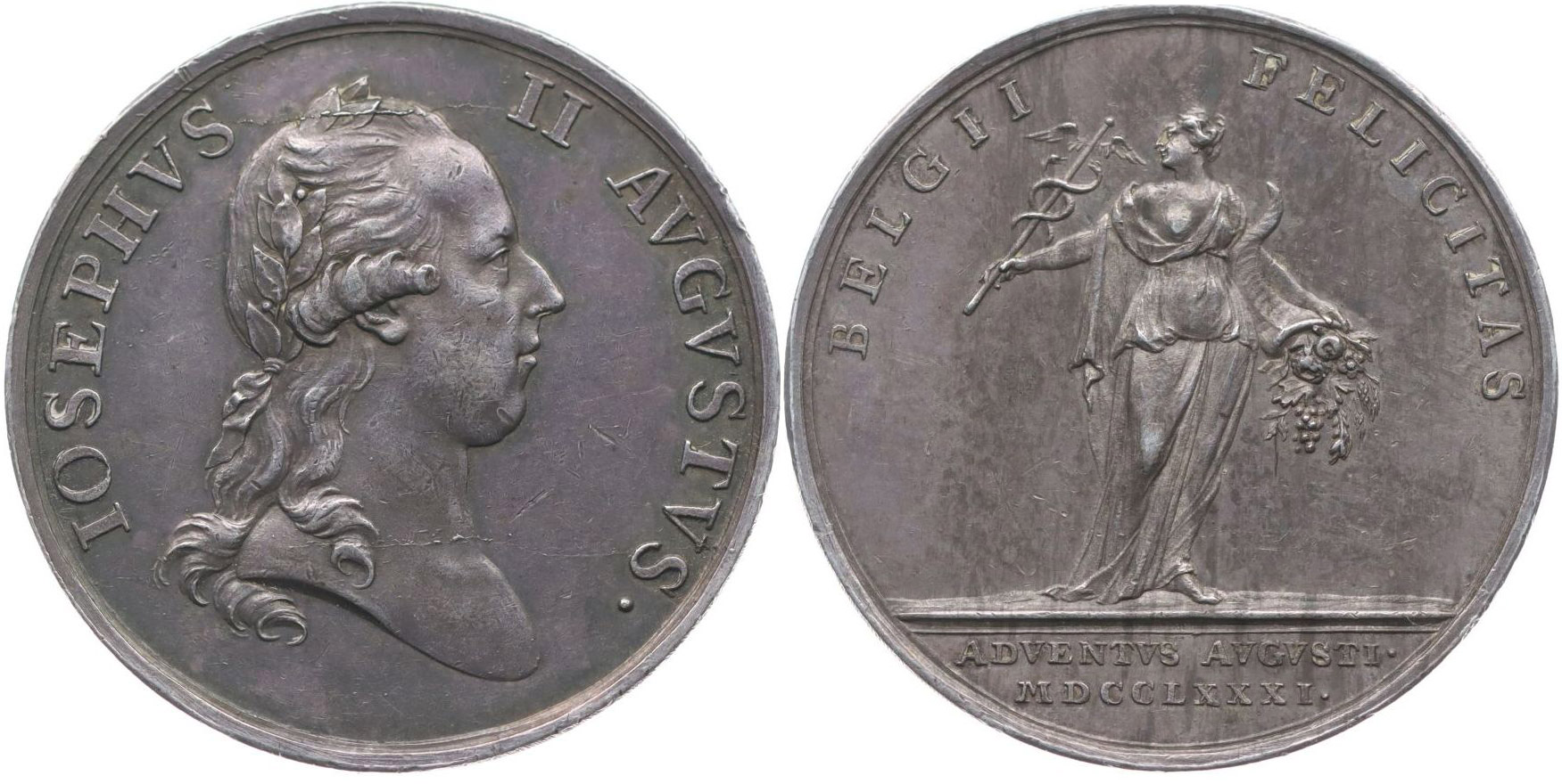 Nesign. - medaile na cestu do Belgie 1781 Hlava zprava, opis / bohyně s rohem hojnosti, 2řádk.nápis, opis Nesign.(v.Berckel), Ag 27 mm, 6.39 g, Mo.2137_R!