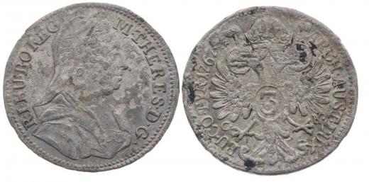 3 Krejcar 1767 CK, Vídeň, N.59, Her.1325_nerovný povrch v av.