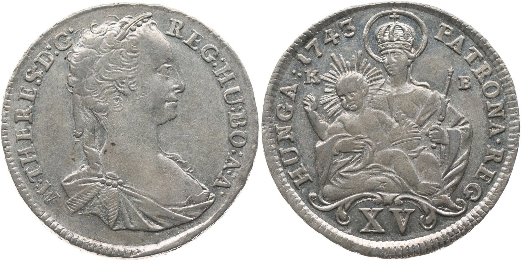 XV Krejcar 1743 KB, N.68, bez tečky za letopočtem, Hus.1711, Her.1109