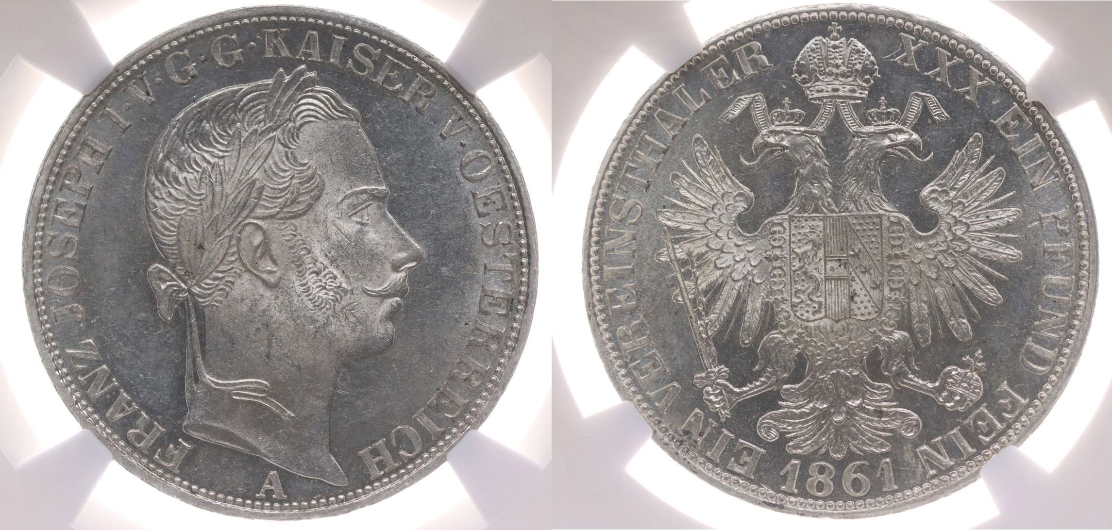 Tolar spolkový 1861 A, znač. NGC: MS62