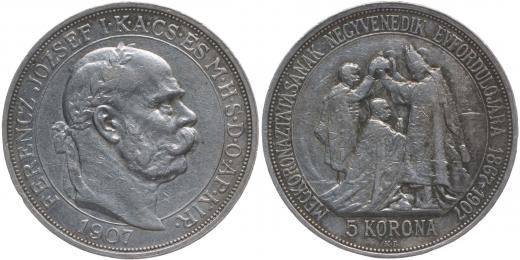 5 Koruna 1907 KB - korunovační