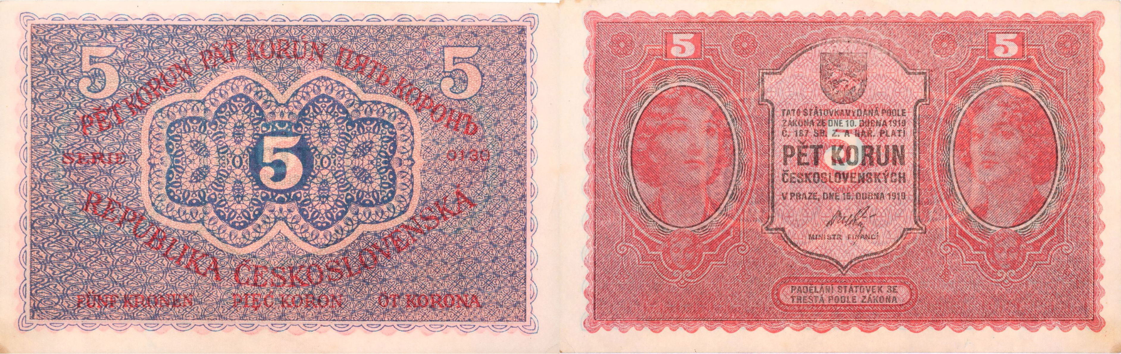 5 Kč 1919, série 0130, B.8, Hejzl.8a_"neperf."