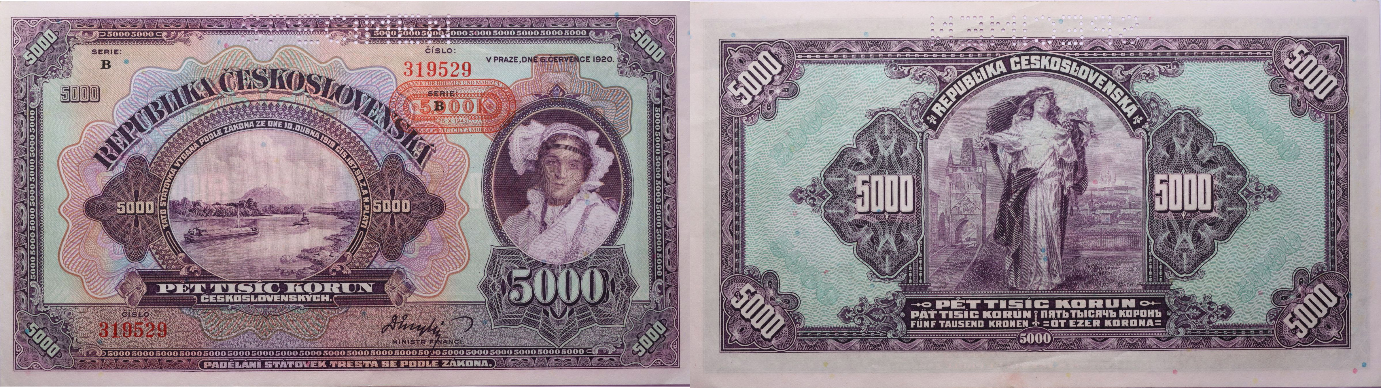 5000 Kč 1920 - přetisk sér.B, B.N3(43), Hejz.N1S1 _dr.přel. přes pravý roh "SPECIMEN"