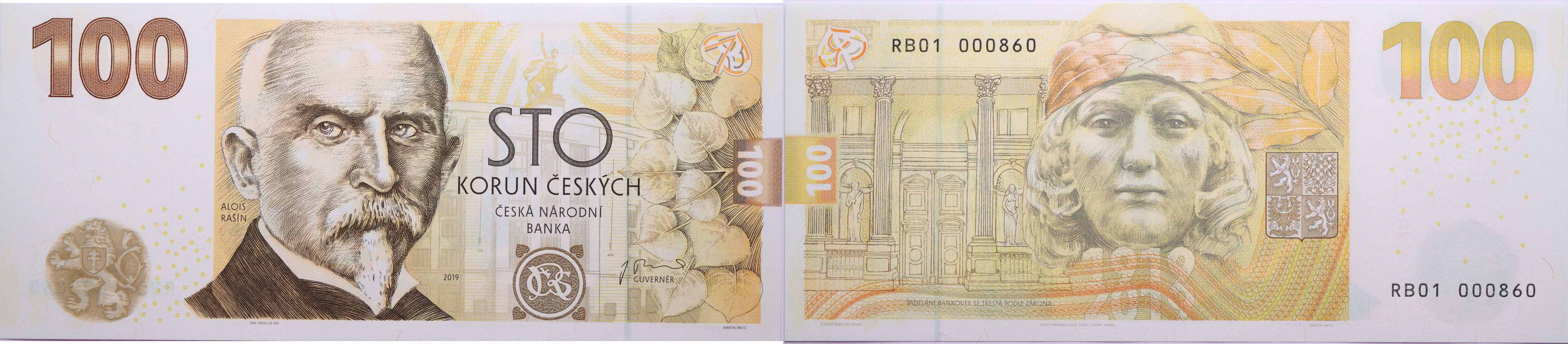 100 Kč 2019 A.Rašín ČNB, sér.RB01 000860_v pam.obalu s knížkou