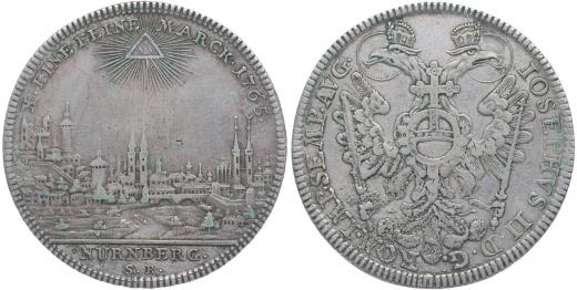 Tolar 1765 SR - pohled na město / znak, s tit.Josefa II. Sch.67, Cr.81, KM.350