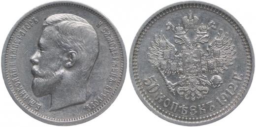 50 Kopějek 1912 EB, Y.58.2, Uzd.2150 skup.XXI-A/a