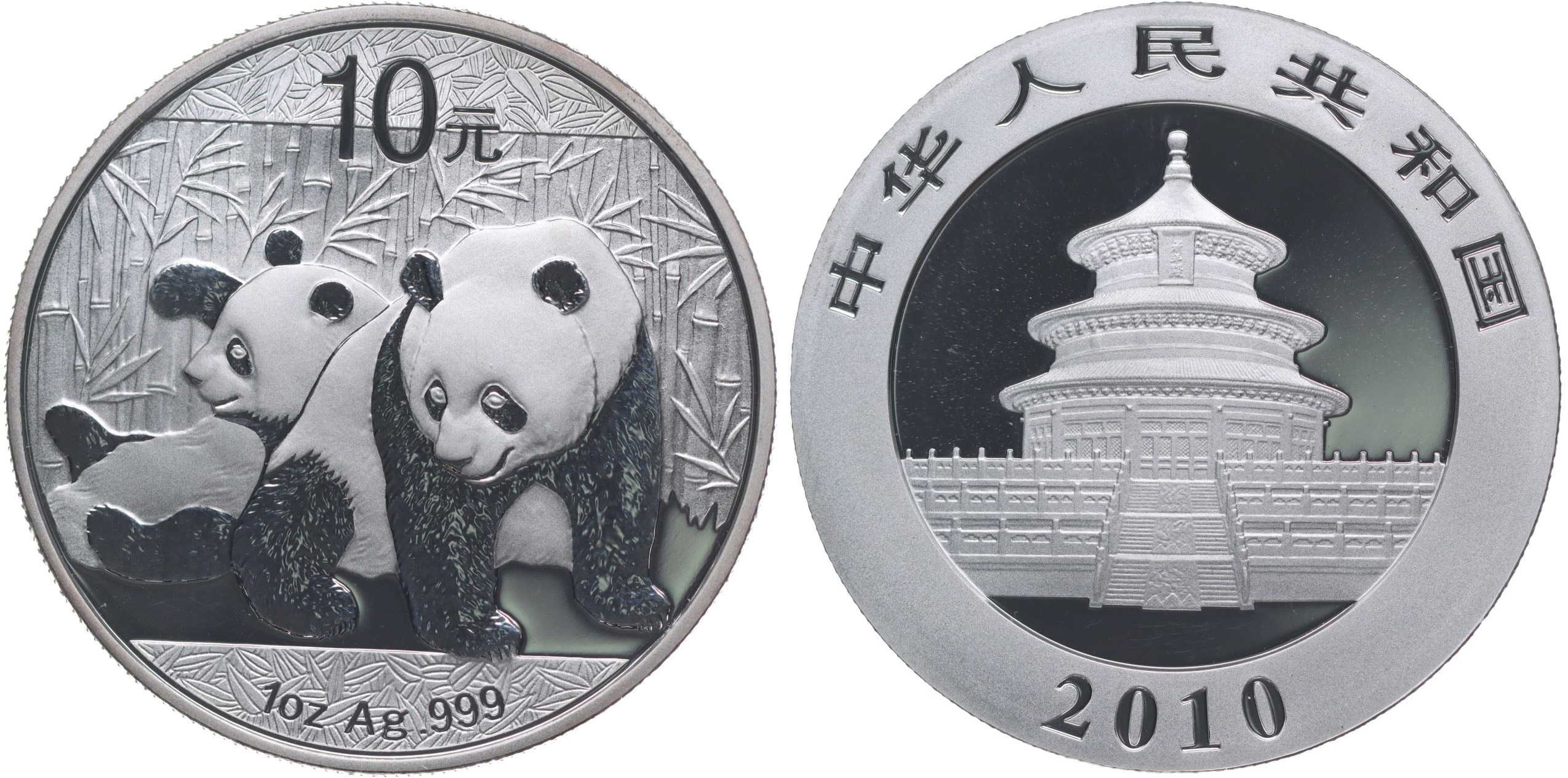 10 Yuan 2010 - panda s mládětem, 0.9990, Ag 31.105 g_orig.kapsle