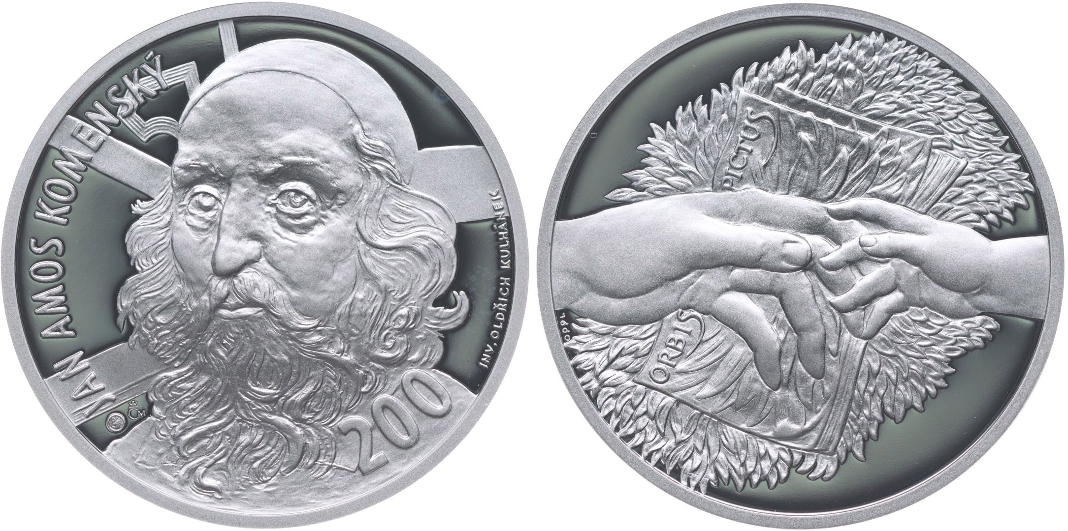 J.A.Komenský - pocta Oldřichu Kulhánkovi, 2014 Motiv 200 Kč, opis / spojené ruce, na pozadí kniha Sign., Ag 34 mm, 16 g_orig.kapsle + etue + certifikát