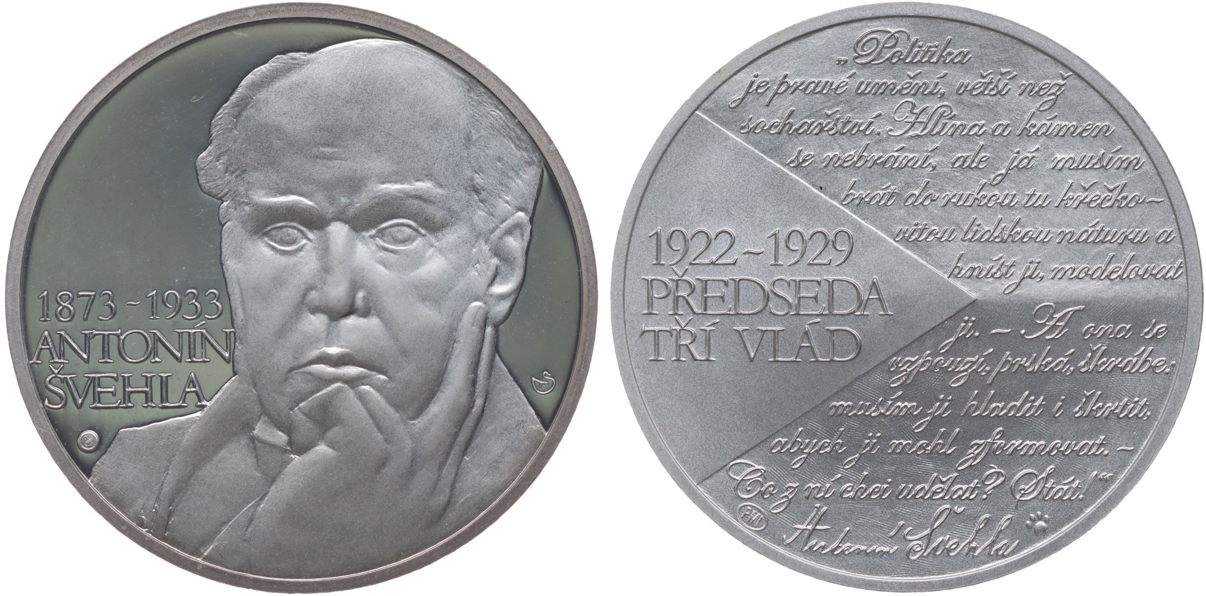 Antonín Švehla - medaile k 140.výr.narození, b.l. (2013) poprsí čelně, třířádk.nápis / 13řádk.nápis, předesda tří vlád v letech 1922 - 1929, Ag 999, 37 mm, 31,04 g (unce), čísl.058 (náklad 616 ks)_orig.etue + kapsle + certifikát