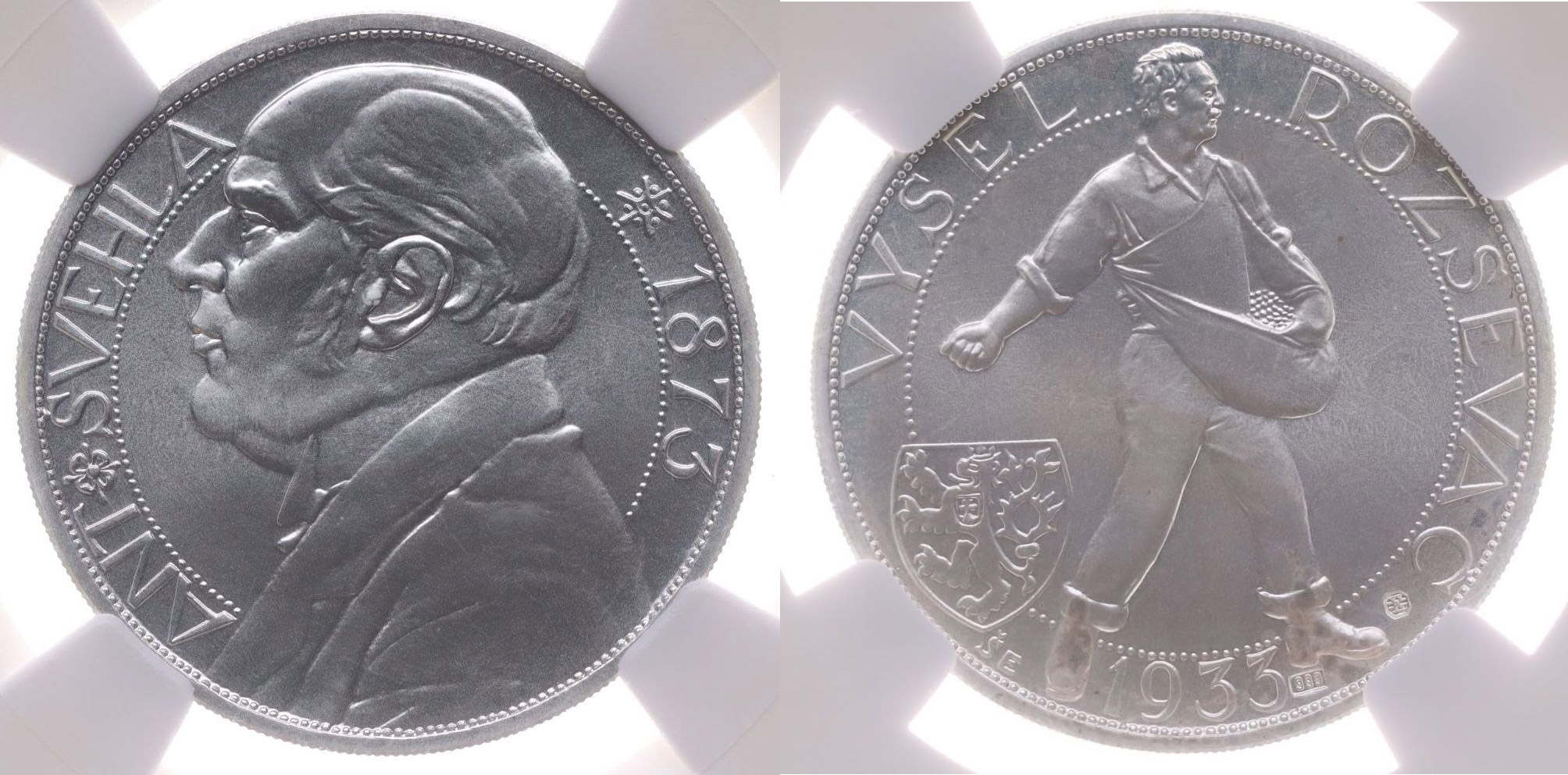 Antonín Švehla - Vyšel rozsévač, 1933 Poprsí zleva, opis / rozsévač, český znak, opis, Sign., Punc. 999, Ag 30 mm, 10.00 g, jako PŠ.140, jako Boh.96c _novoražba z r.2021 NGC: MS 68