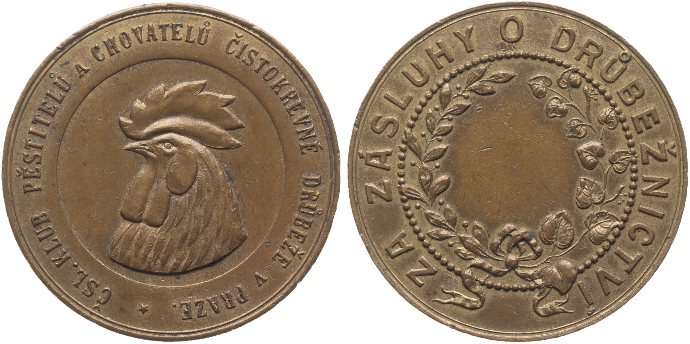 Nesign. - Čsl. klub pěstitelů a chovatelů čistokrevné drůbeže, b.l. Hlava kohouta zleva, opis / věnec, opis Za zásluhy o drůbežnictví Bronz 35 mm, 19 g