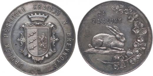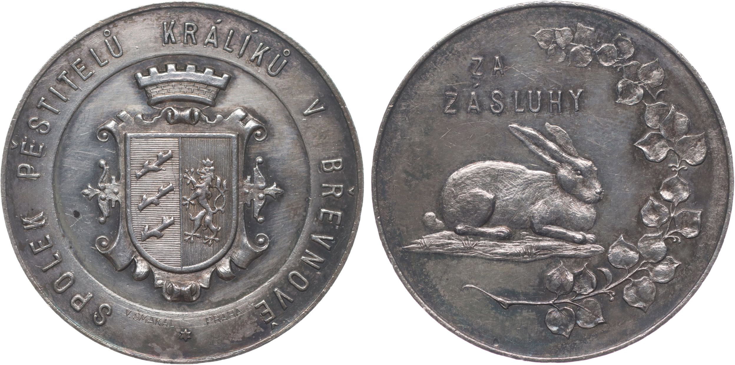 Šmakal - spolek pěstitelů králíků - Za zásluhy, b.l. Městský znak Břevnova, opis / králík, lipová ratolest 2řádk.nápis, Sign., Punc. Ag 39 mm, 17 g