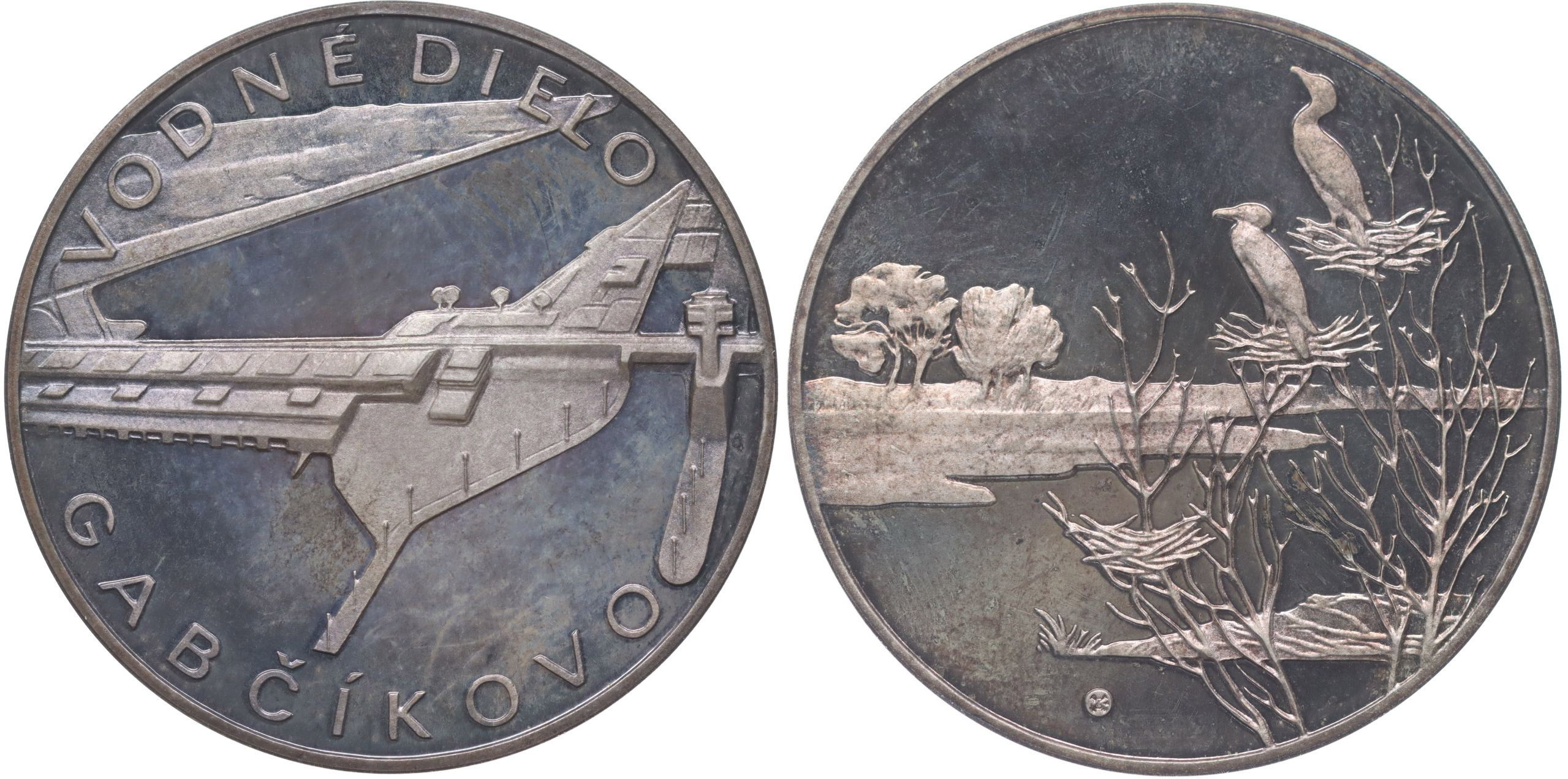 Nesign. - Vodné dielo Gabčíkovo, b.l. (1993) Pohled na stavbu, opis / vodní ptactvo na stromě Punc.900, Ag 40 mm, 37,91 g