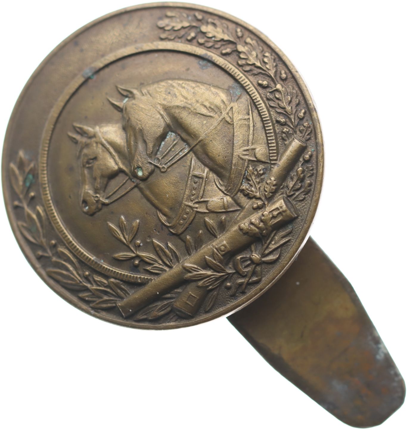 Odznak pro vozky Artilérie (dělostřelectva) 1906 Msavní bronz 45 mm, Marko.478a_přilet.nepůvodní patka