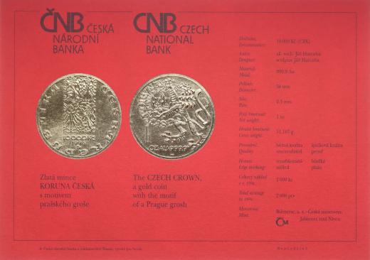 Karta (certifikát) pro minci 10000 Kč 1996 - pražský groš