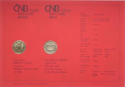 Karta (certifikát) pro minci 1000 Kč 1996 - třídukát Slezských stavů