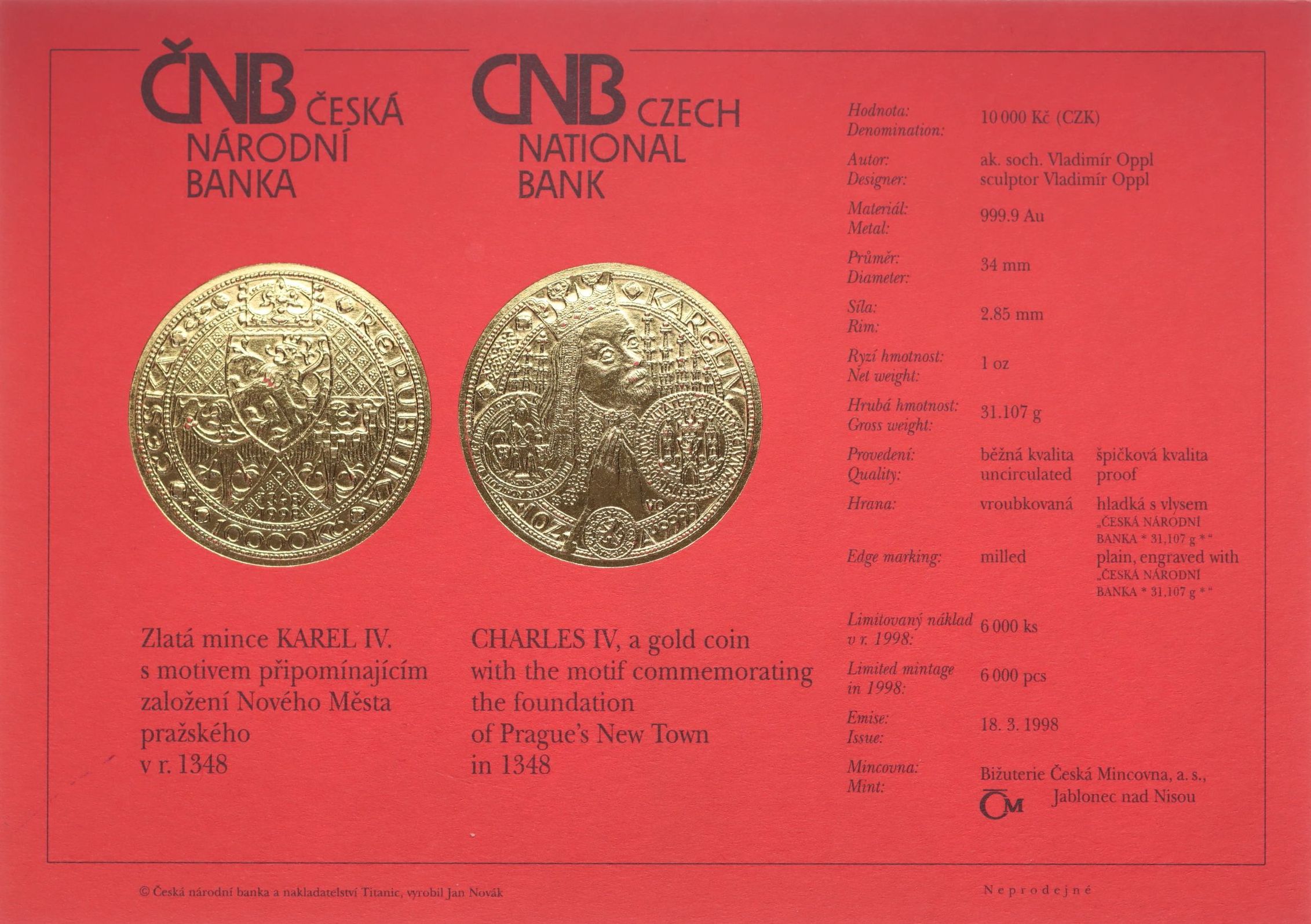 Karta (certifikát) pro minci 10000 Kč 1998 - Karel IV.