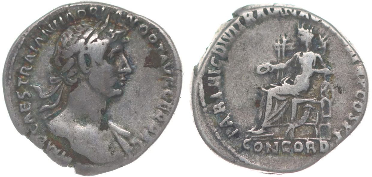 AR Denár, Rv:"PARTHIC.DIVI.TRAIAN.AVG.F.P.M.TR.P.COS.PP" sedící Concordia zleva, S.995pod., K.32.80.1, RIC.9