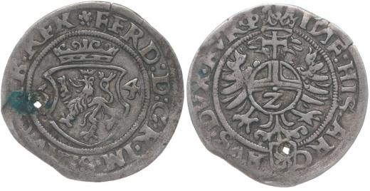 2 Krejcar 1564 Jáchymov-Geitzköfler, J.92, MKČ.148_dírka