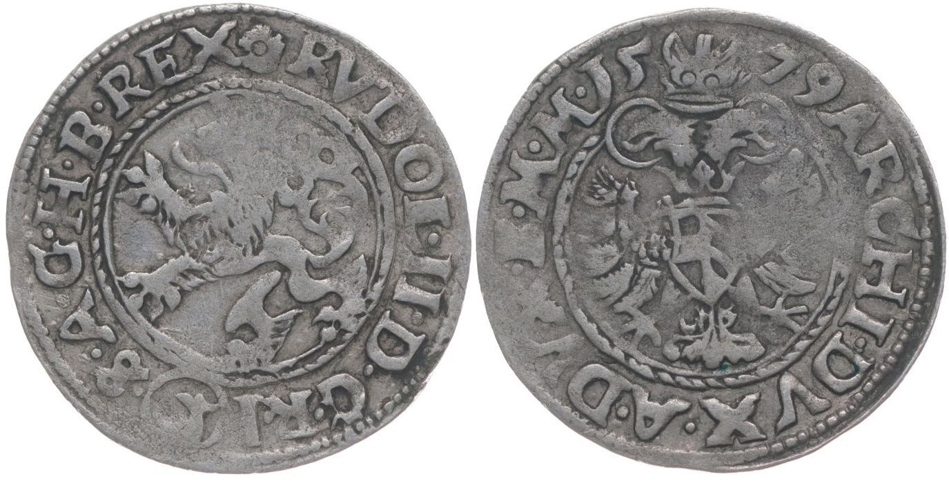 Bílý groš 1579, K.Hora-Šatný, J.13a1, MKČ.376_dr.ned.