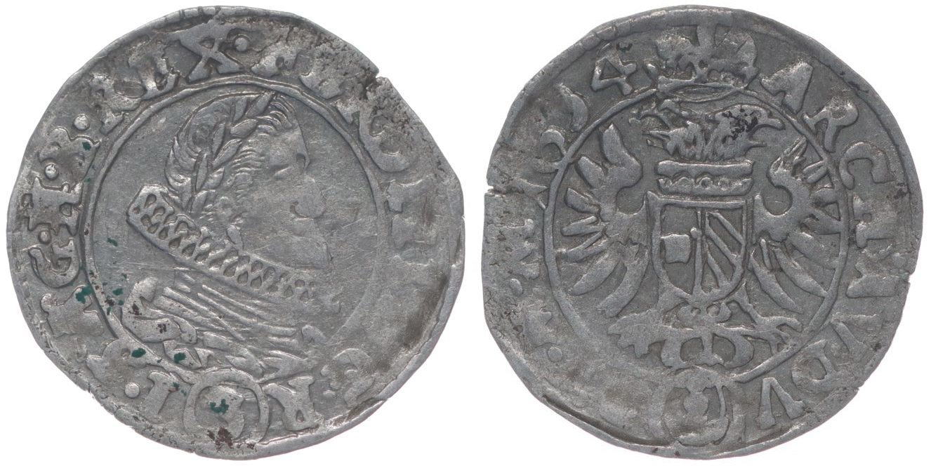 3 Krejcar 1634, Praha-Schuster, J.31c, MKČ.763, Her.1158_č.ned.