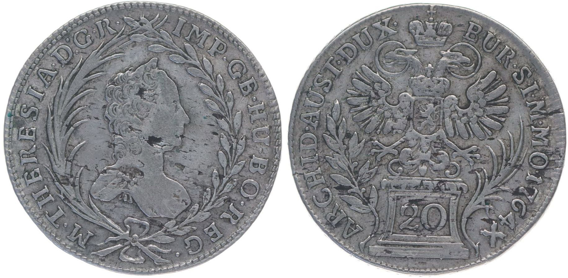 20 Krejcar 1764, Praha-Erdmann, Nov.30, Her.930_por.stř. v av.