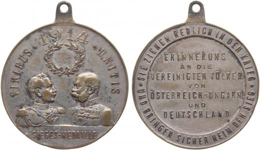Nesign. - medaile na spojenectví s Německem, 1914 Portréty proti sobě, opis / 7řádk.nápis, opis Postř.bronz 36 mm_orig.raž.ouško