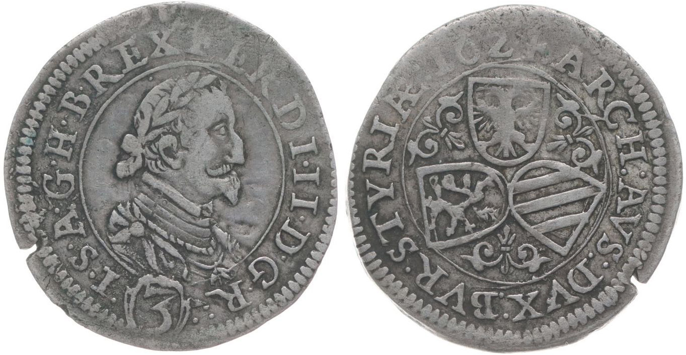 3 Krejcar 1624, Štýrský Hradec, Her.1075c