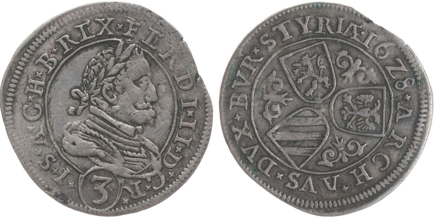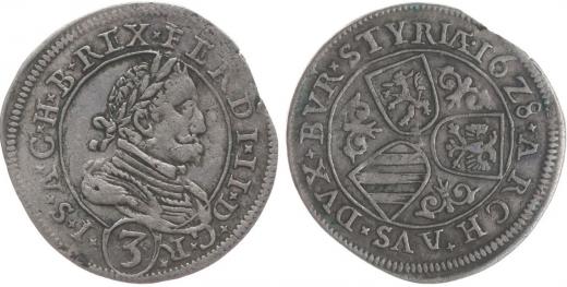 3 Krejcar 1628, Štýrský Hradec, Her.1085_č.ned.