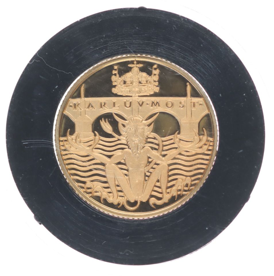 Karlův most, b.l. z cyklu Magická Praha Sign.Oppl, Punc.585, Au 18 mm, 2 g_orig.kapsle