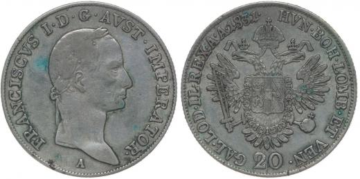 20 Krejcar 1831 A - stuhy volně vlající, Her.800