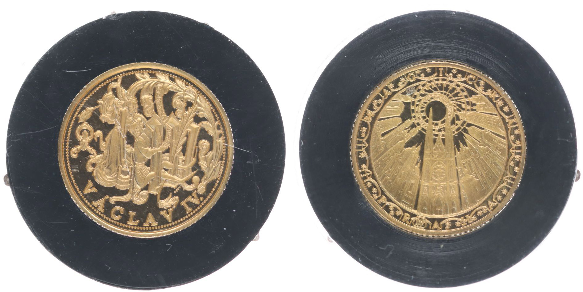 Václav IV., točenice a ledňáček, b.l. z cyklu Magická Praha Sign.Oppl, Punc.585, Au 18 mm, 2 g_orig.kapsle