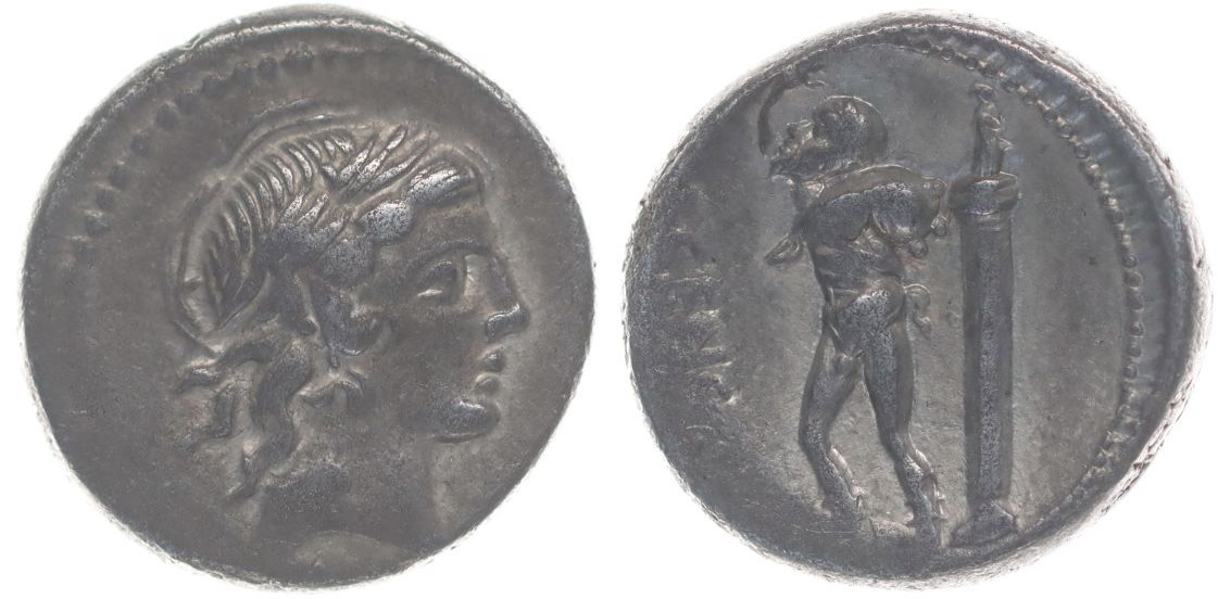 AR denár, hlava Apollóna zprava / Marsyas opřený o sloup s Victorií, nápis "L.CENSOR", Crawford.363/1, S.281, Al.1254, Ves.1177