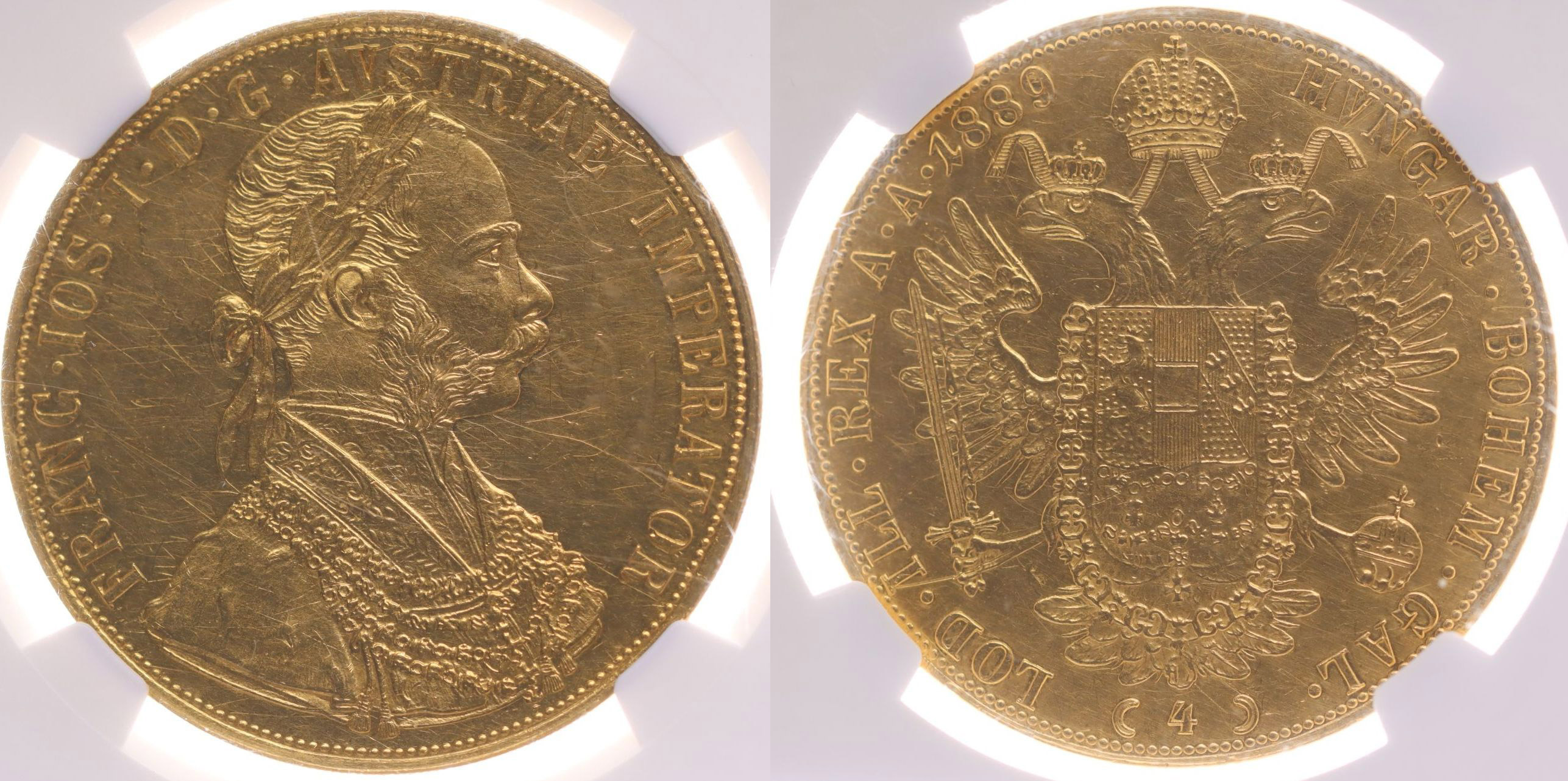 4 Dukát 1889 b.zn. (raženo 31.186 ks)_NGC: UNC Details