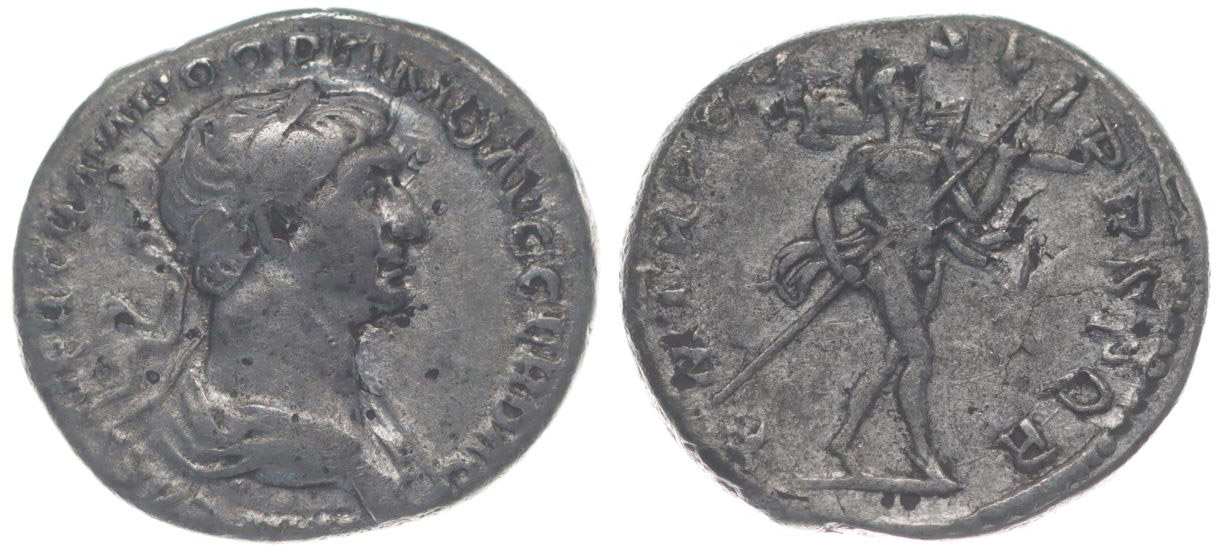 AR Denár, Rv:"P.M.TR.P.COS.VI.P.P.S.P.Q.R.", kráčející Mars zprava, S.887, C.270, K.27.53.4