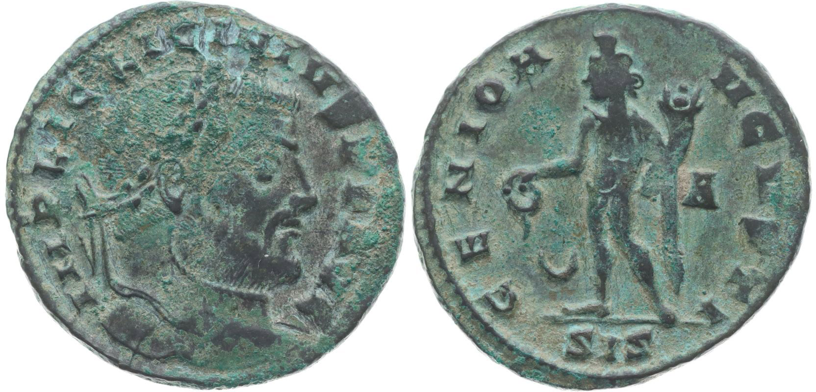AE Follis, Rv:"GENIO.AVGVSTI.", stojící Genius zleva minc.Siscia, S.3693, C.26, K.132.37