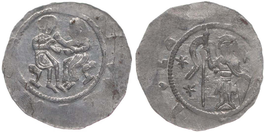 Denár, F.neuvádí, Ca.532 (na Rv. 3 hvězdy, var.1), Št.499.2 2 hvězdy u praporce, 1 za zády_č.ned.