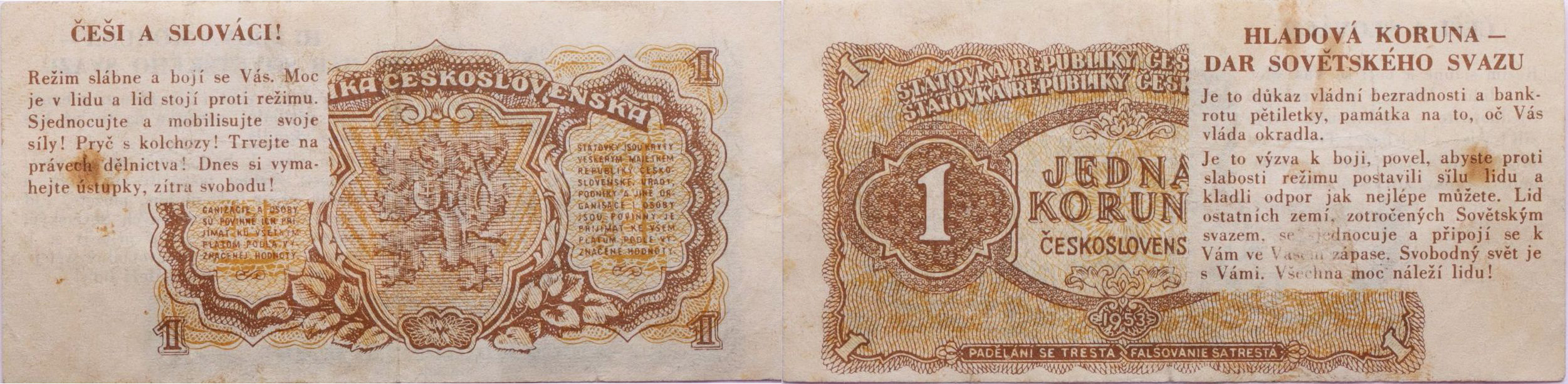 1 Koruna 1953 - "Hladová koruna - dar Sovět.svazu"_2x zahn.skvr.