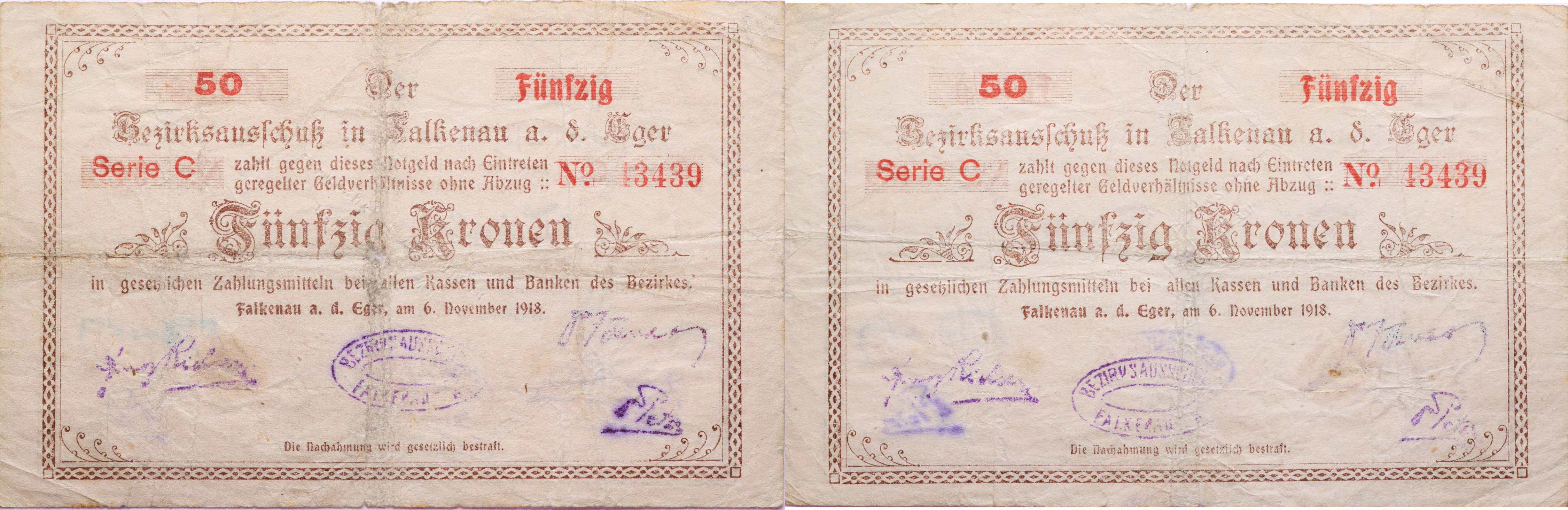 Falknov (Falkenau a.d.Eger) - 50 K.6.11.1918, sér.C, čís.43439 DH.44.2.8