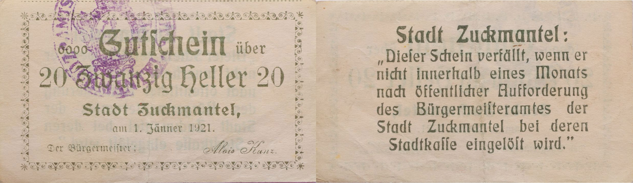 Zlaté Hory (Zuckmantel) - 20 Heller 1.1.1921, DH.240.1.2a