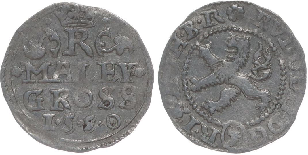 Malý groš 1590, K.Hora-Šatný, HN.2a (opis 7a), Ja.6b tečky mezi číslicemi v letopočtu 1.5.9.0._dr.ned.