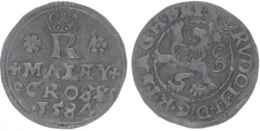 Malý groš 1584, Jáchymov-Hoffmann, HN.7a (opis 7c), jako J.4c var.: mincmistr.značka nad srpkem měsíce květinka_č.ned. R!
