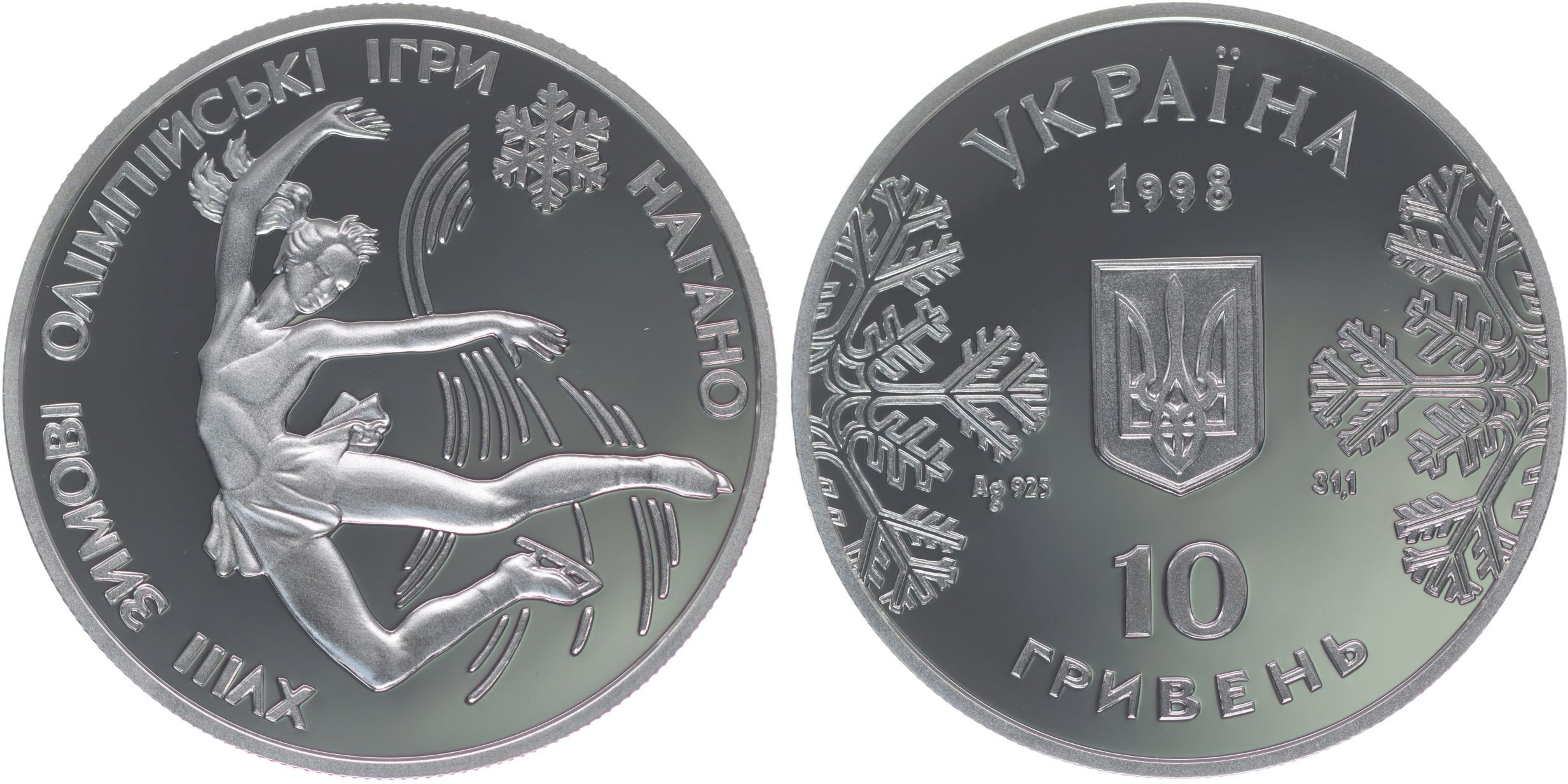 10 Hrivna 1998 - XVIII.ZOH Nagano, krasobruslení, Ag 33,62 g, KM.45 _certifikát