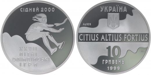 10 Hrivna 1999 - XXVII.LOH Sydney 2000, skok daleký Ag 33,62 g, KM.116_certifikát