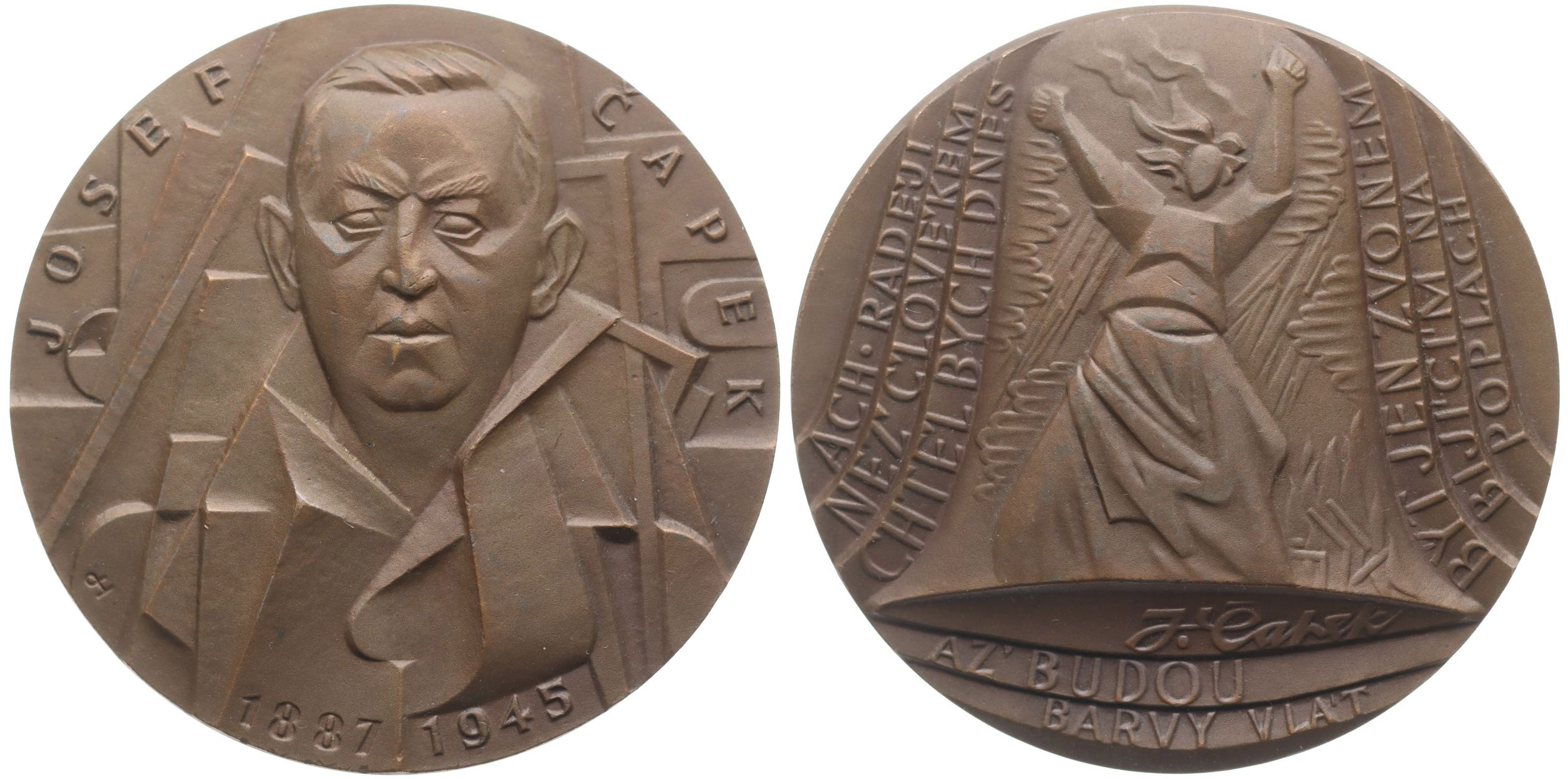 Josef Čapek (1887 - 1945), b.l. (1987) Hlava zpředu, geometrické útvary, opis / Čapkův zvon bijící na poplach, opisy, Sign., Bronz 80 mm