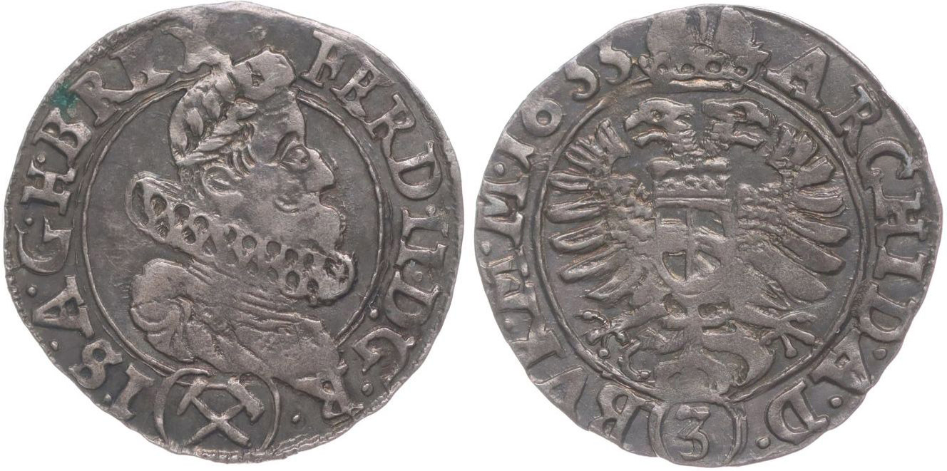 3 Krejcar 1633, K.Hora-Prunz, J.33b, MKČ.812 var. tečka nad hlavou_R!