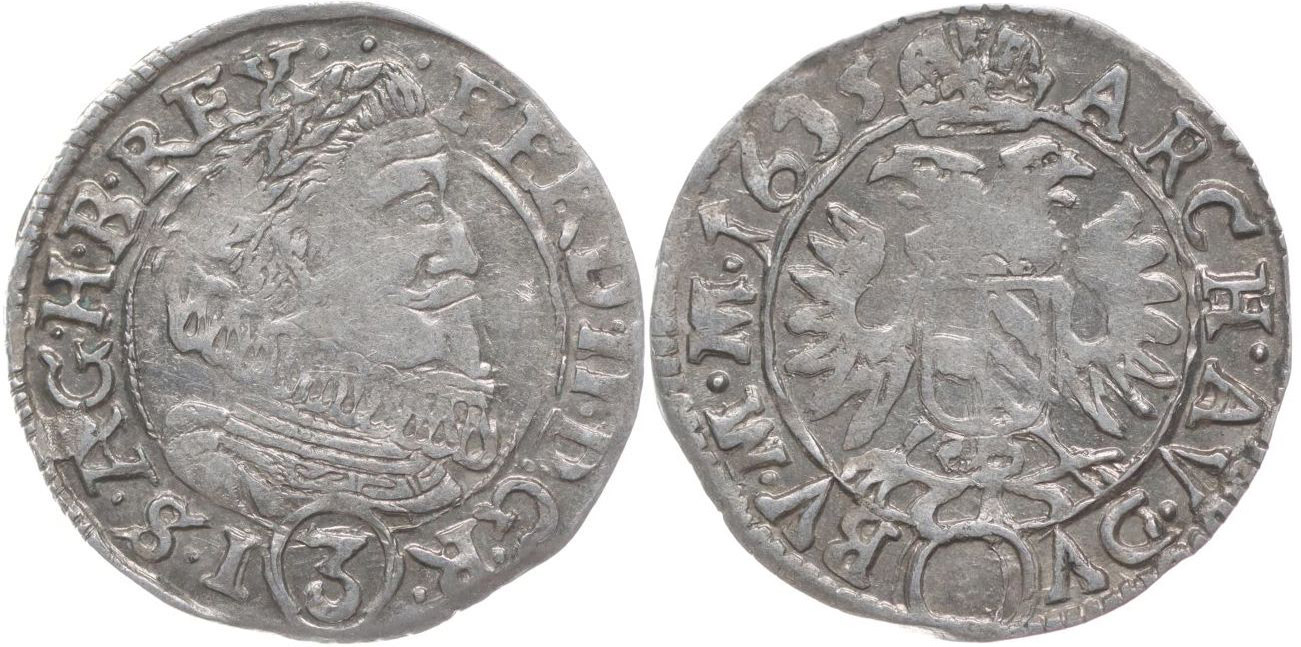 3 Krejcar 1635, K.Hora-Neumann, MKČ.815, Ja.34c, Her.1189_R!