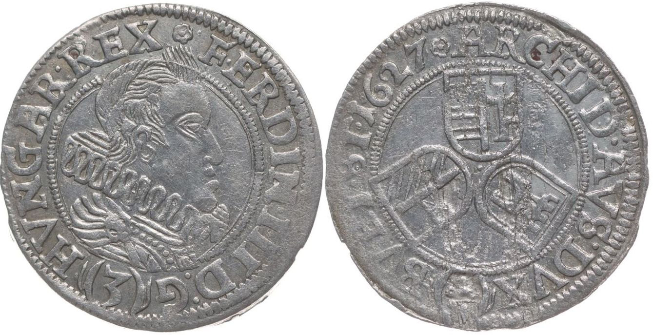 3 Krejcar 1627 HG, Huser Glacensis, Nech.100pod., MKČ.1328pod, Fr.2829, se značkou mincmistra, opis: AVS mincmistr.zn. DVX_R!