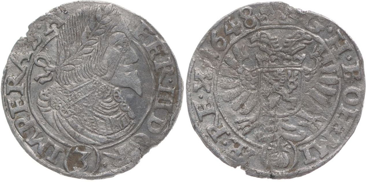 3 Krejcar 1648, Praha-Wolker, J.3b, MKČ.1181_2x dr.okr.raž.