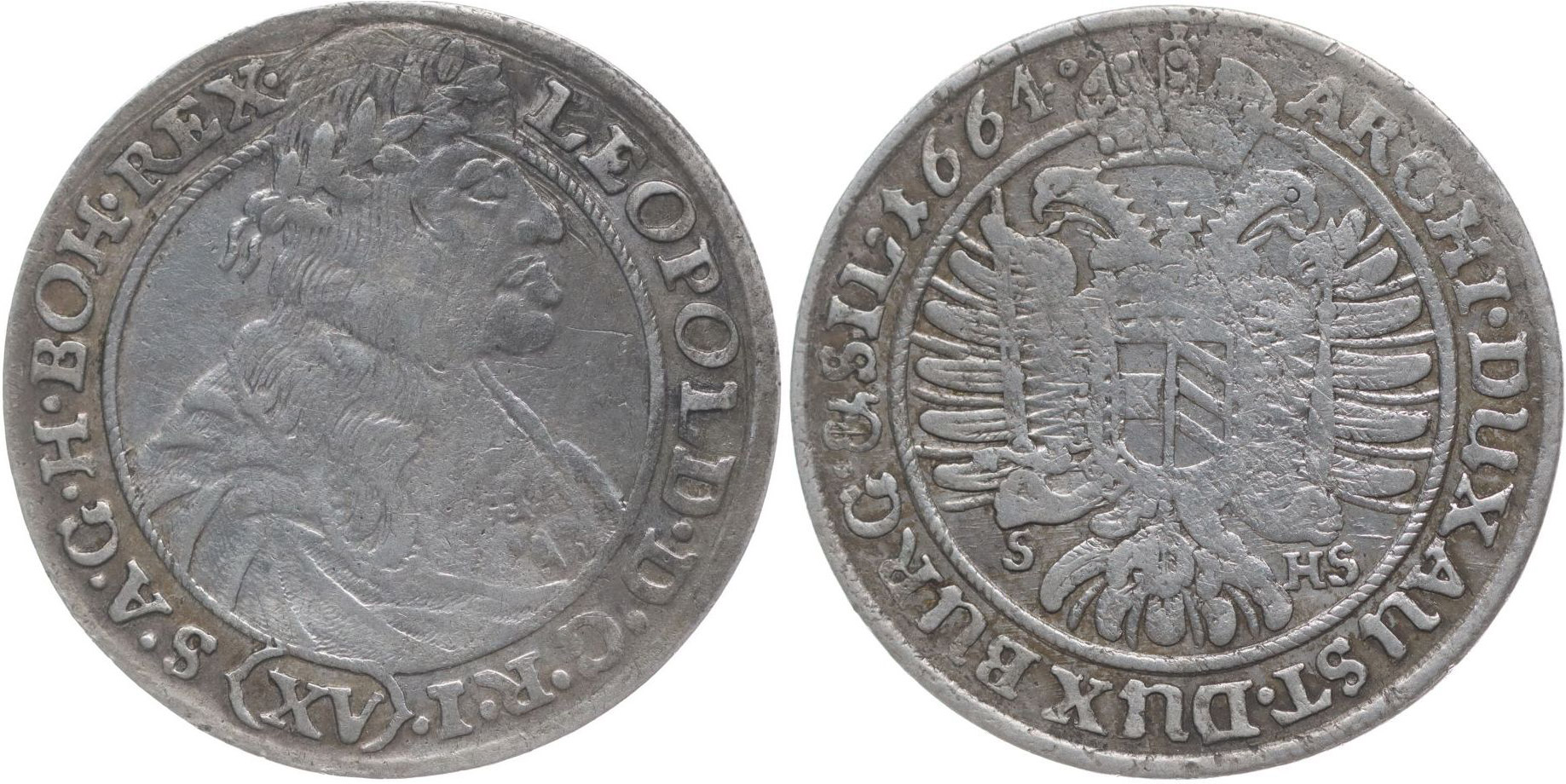 XV Krejcar 1664, Vratislav-Hammerschmidt, Nech.681, MKČ.1596, Höll.64.3.1a, varianta značky S-HS